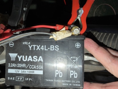 久しぶりにタイカブのエンジンをかけようとしたがバッテリーが逝っていた