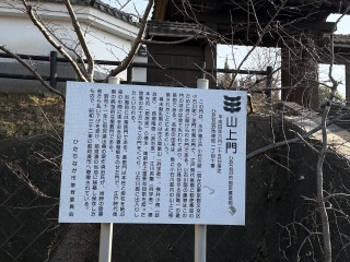 この門は、水戸藩江戸小石川邸(現在の東京都文京区小石川町)正門右側の門で、江戸時代後期に勅使奉迎のために特に設けられた門である。小石川邸の建物はこの門のほかは全て失われており、今日現存する邸内唯一の建築物である。名前の由来は、後に小石川邸内の山上に移築されたことによるといわれる。