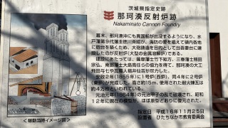 幕末、那珂湊沖にも異国船が出没するようになり、水戸藩第9代藩主徳川斉昭が、海防の要を唱えて領内各地に砲台を築くため、大砲鋳造を目的として当吾妻台に建設したのが反射炉(大型の金属溶解炉)である。